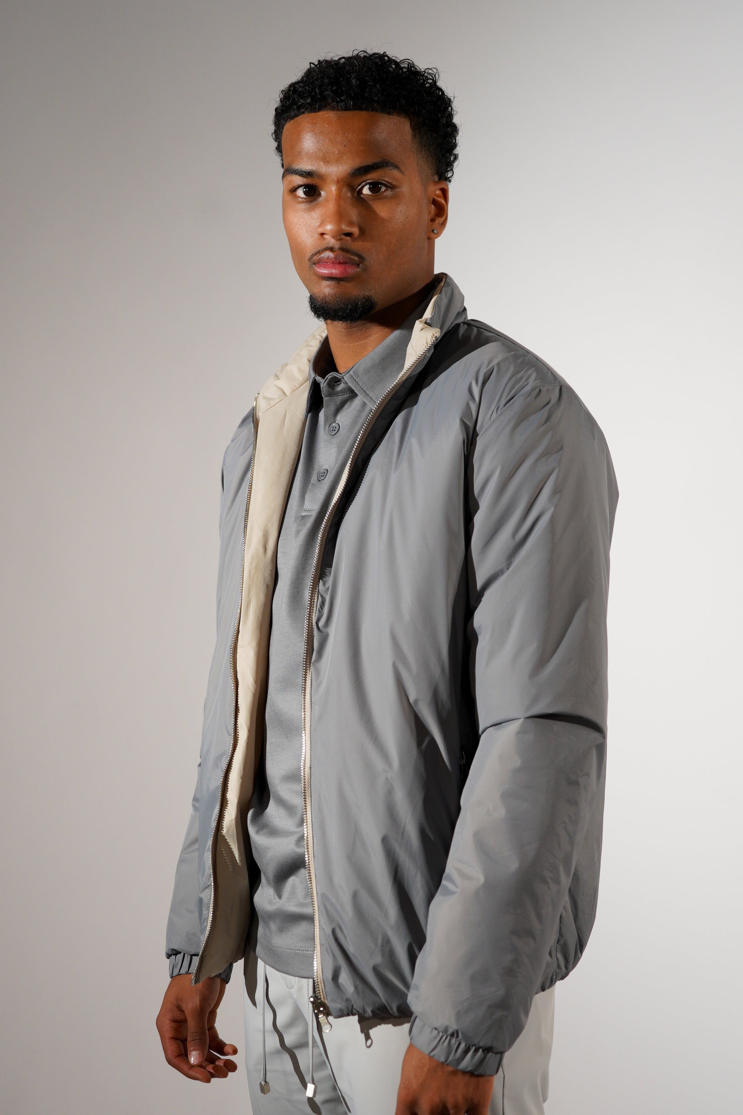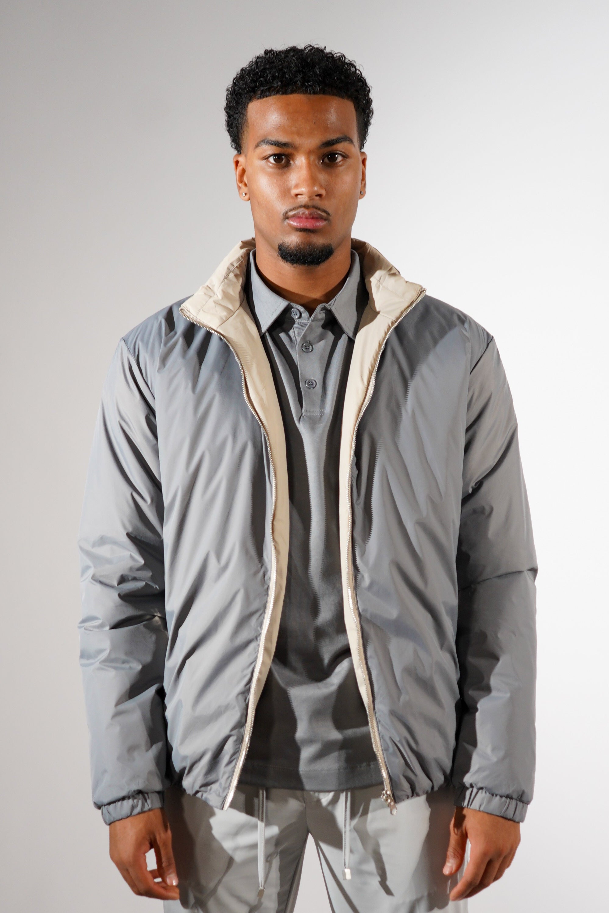 Dubbelzijdig jas grijs beige