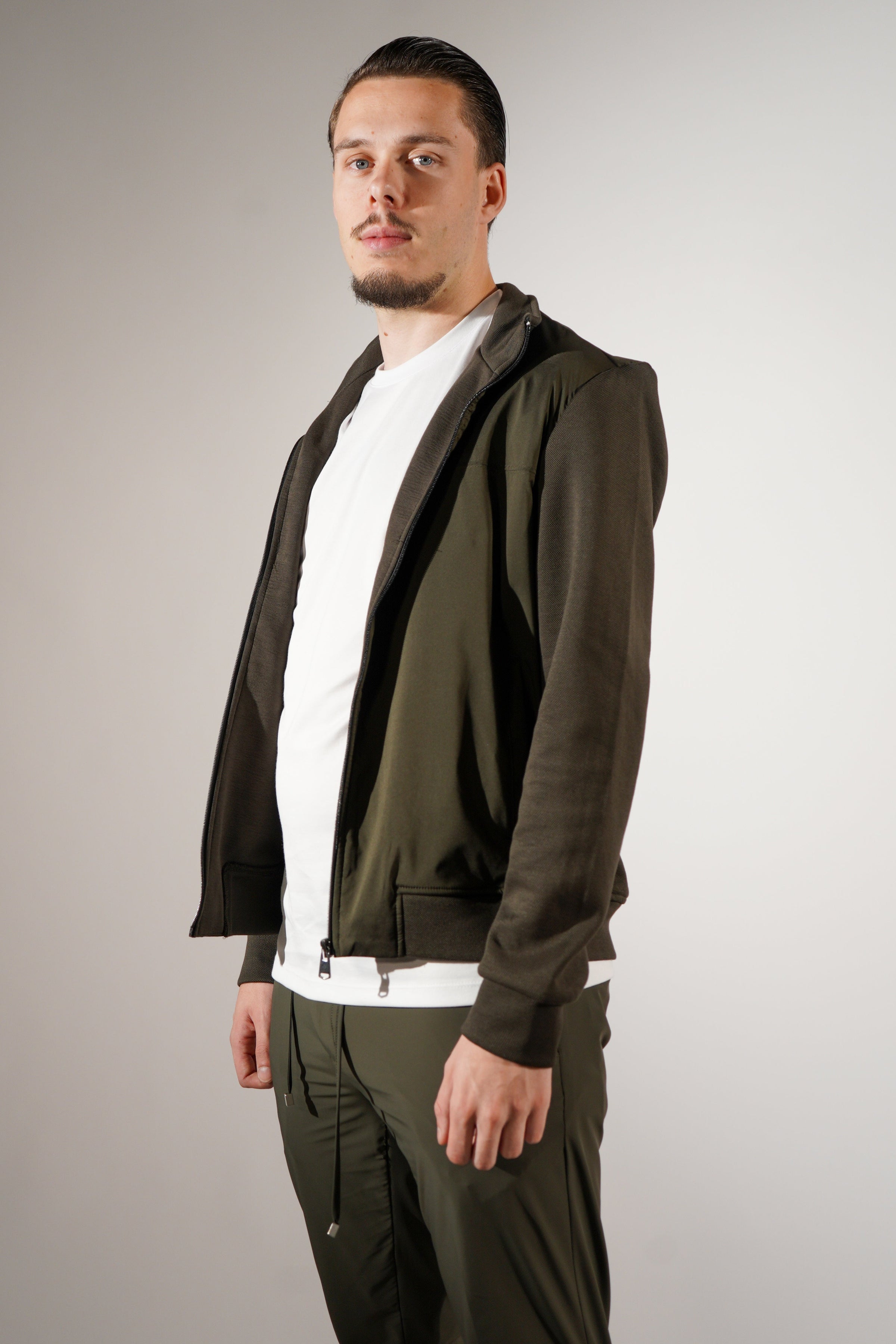 Upgrade je dagelijkse look met deze moderne groene herenjas. De jas is uitgevoerd in een combinatie van gladde en zachtgebreide materialen, wat zorgt voor een comfortabele pasvorm en een stijlvolle uitstraling. Dankzij de opstaande kraag en volledige ritssluiting biedt de jas zowel functionaliteit als een strakke, eigentijdse look.