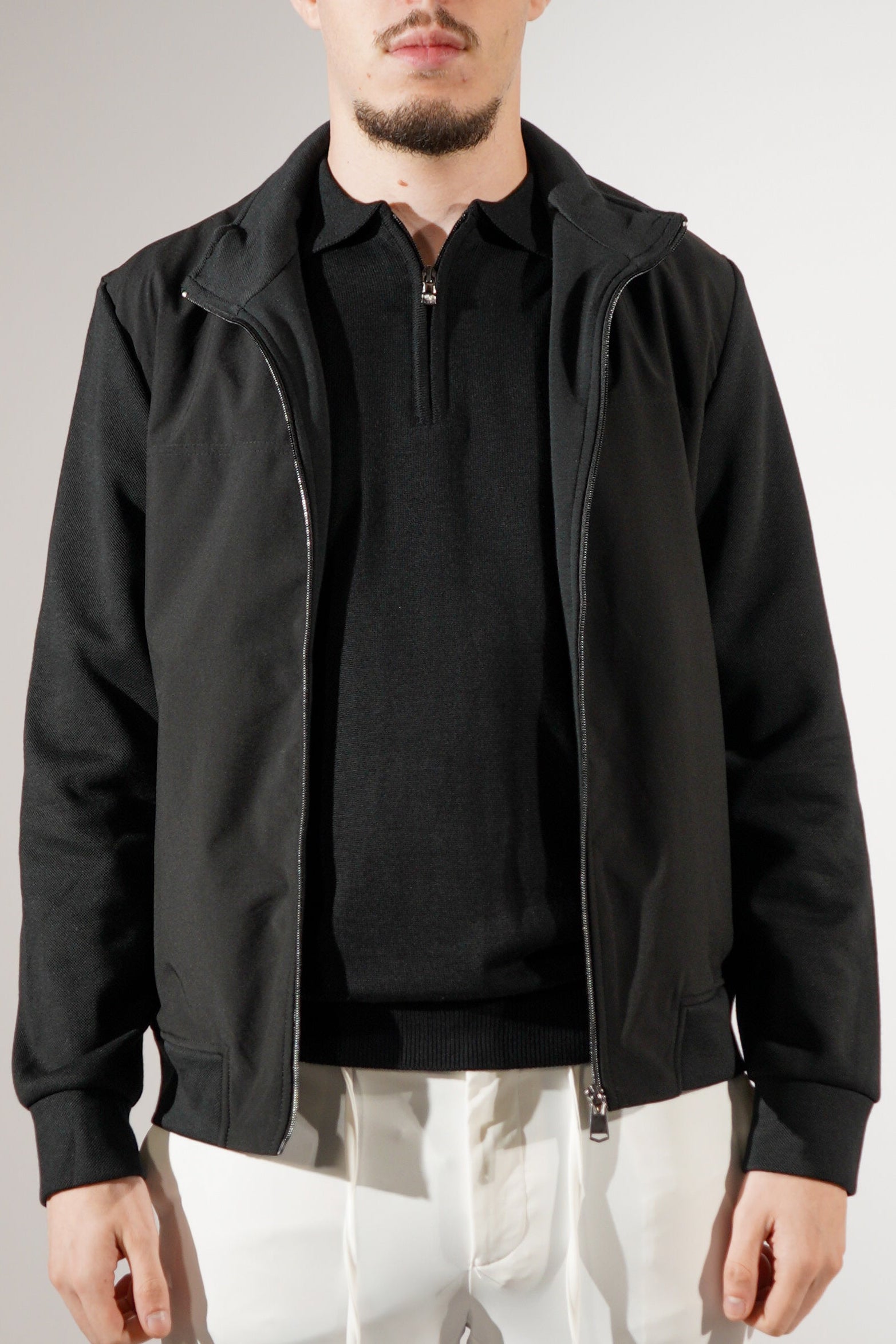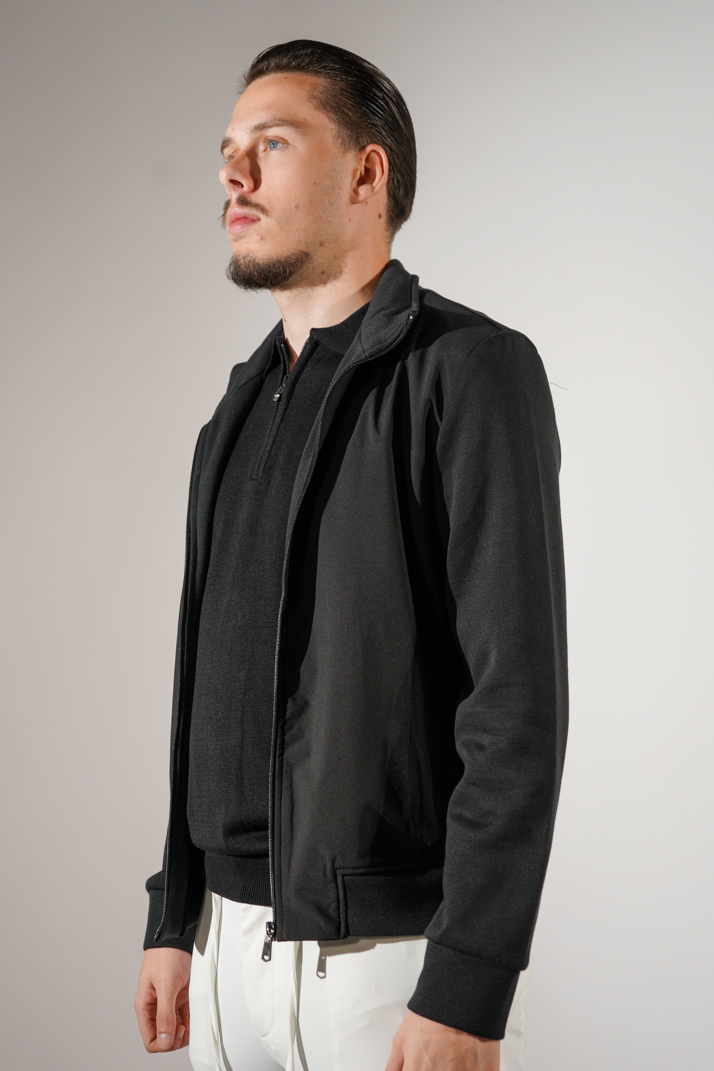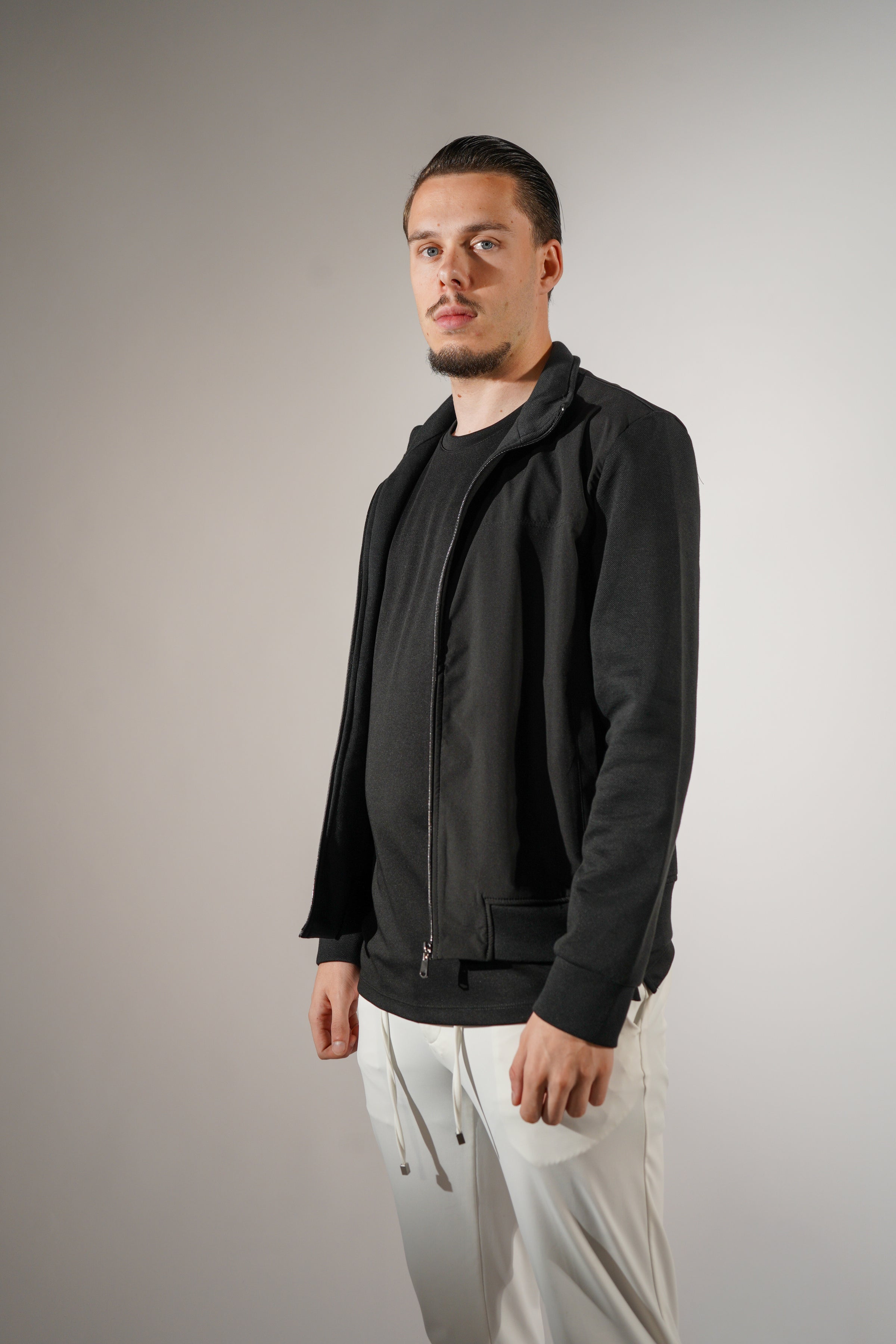Upgrade je dagelijkse look met deze moderne zwarte herenjas. De jas is uitgevoerd in een combinatie van gladde en zachtgebreide materialen, wat zorgt voor een comfortabele pasvorm en een stijlvolle uitstraling. Dankzij de opstaande kraag en volledige ritssluiting biedt de jas zowel functionaliteit als een strakke, eigentijdse look.